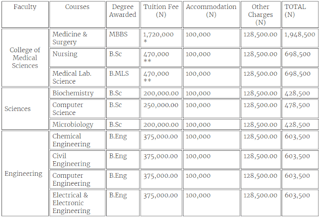 *MBBS Students are expected to pay an additional sum of N500,000 for Clinicals from 300 Level.