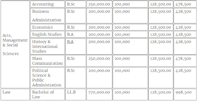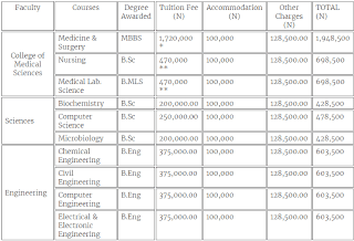 ** Nursing and Medical Laboratory Science Students are expected to pay an additional sum of N150,000 for Clinicals from 300 Level