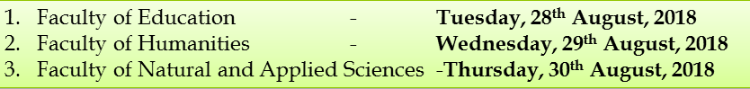 Online registration for the Screening Exercise for both the UTME and DE candidates will commence on Monday, 23rd July, 2018 and end at Midnight of Sunday, 19th August, 2018.